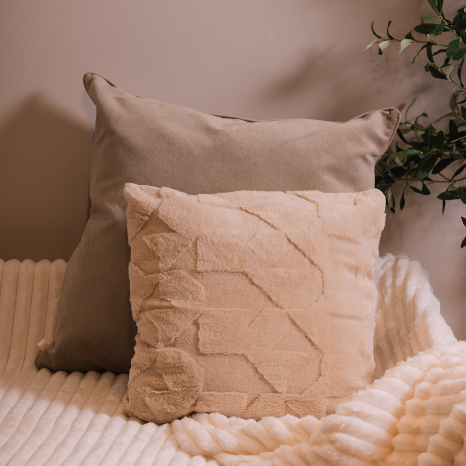 Almohadón 45 x 45 cm tono marrón claro. De textura suave y apariencia acogedora, este almohadón es ideal para sumar calidez y confort al ambiente. Su diseño combina un acabado liso con un frente texturado que aporta relieve y un toque decorativo sutil. Perfecto para sillones, camas o rincones de descanso, se integra fácilmente en espacios de estilo moderno, nórdico o clásico.