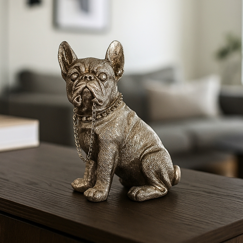 Figura decorativa bulldog 21 cm. Con fuerte personalidad y detalle realista, este bulldog decorativo se destaca por su acabado metálico envejecido que resalta cada textura y expresión. Una pieza con carácter, ideal para sumar un acento distintivo y sofisticado. Perfecto para bibliotecas, escritorios o mesas auxiliares, aporta un toque moderno con impronta clásica.