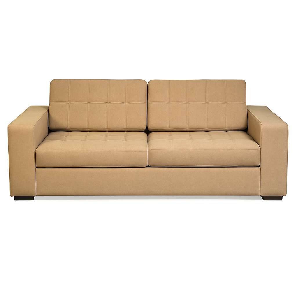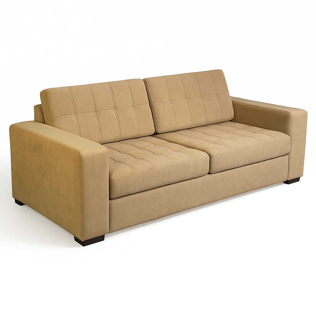 Sofá de diseño contemporáneo, líneas limpias y costuras cuadradas que le aportan un toque de distinción y personalidad. Los apoyabrazos anchos y rectos suman funcionalidad y confort, convirtiéndolo en un sofá ideal para disfrutar tanto de momentos de relax como de reuniones. Ideal para quienes buscan un diseño moderno, cómodo y adaptable a diferentes estilos de decoración. Disponible en distintas telas. Consultar por cuero.